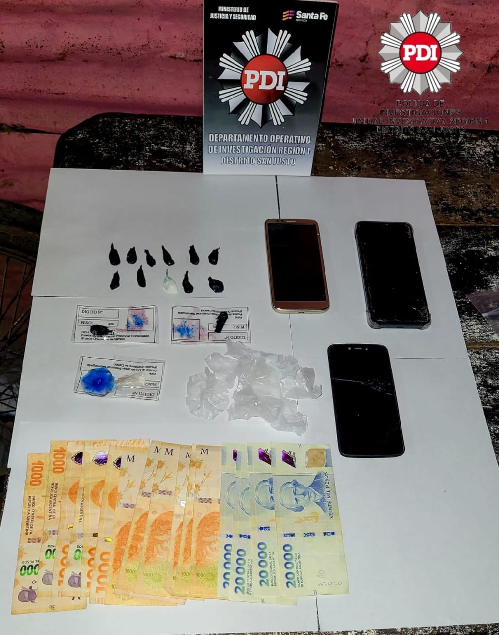 ALLANAMIENTOS POR MICROTRÁFICO EN SAN JUSTO: DOS DETENIDOS Y SECUESTRO DE DROGAS, ARMA Y DINERO
