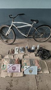 Al ser identificado, el joven manifestó tener domicilio en A. Belotti 2700 y se desplazaba en una bicicleta playera rodado 26. Además, transportaba dos bolsas de cemento Holcim de 25 kg envueltas en una lona negra, junto con una mochila que contenía herramientas y elementos de albañilería. Consultado sobre la procedencia de los objetos, respondió evasivamente e intentó huir, aunque fue interceptado a pocos metros.